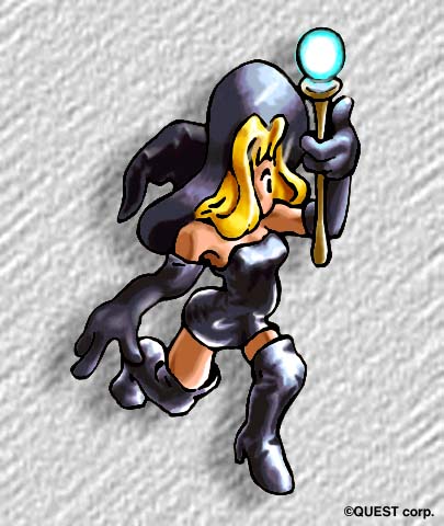 | 人間系女性魔術士クラス。 INTが高く、暗黒、神聖耐性がある他は全体的に低めである。 攻撃力はないが、敵全体をマヒさせる魔法は終盤まで役に立ってくれる。 敵のAGIは調整できないが、味方の攻撃手にはウィッチより高めのAGIを持ち、ダメージ量の低下を補うための攻撃力の高いキャラを組み込むと良いだろう。 |